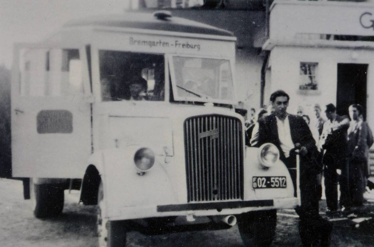 Nur vier Monate später ist es dann soweit: Am 24. Dezember 1928 rollt der damals moderne Chevrolet-Dreiachser in Bremgarten vom Parkplatz und fährt zum ersten Mal die Linienroute bis nach Freiburg, wo Auto und Gäste mit musikalischer Begleitung der Sanitätskapelle auf dem Rotteckplatz begrüßt werden. Mittlerweile können wir nicht mehr zählen, wie oft unsere Busse diese Strecke gefahren sind – denn die Buslinie (mittlerweile 241) existiert bis heute!