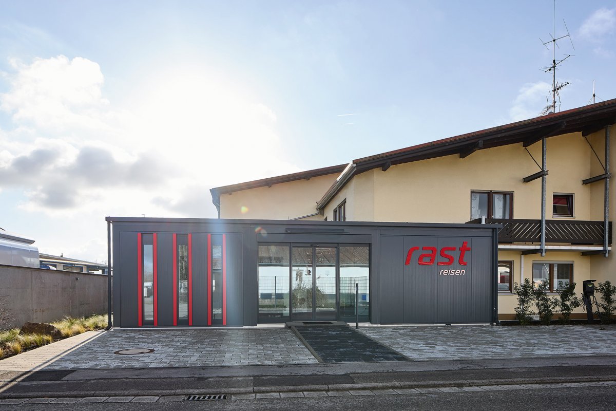 Heute sind hier die kreativen Köpfe zu Hause, die unsere Busreisen entwickeln, Reiseprogramme zusammenstellen und den jährlichen RastReisen-Katalog planen. Auch unsere Buchhaltung hat hier ihren Platz gefunden. Damit ist der Anbau nicht nur ein architektonisches Statement, sondern zugleich das Herzstück unserer Verwaltung und Touristik-Abteilung geworden.