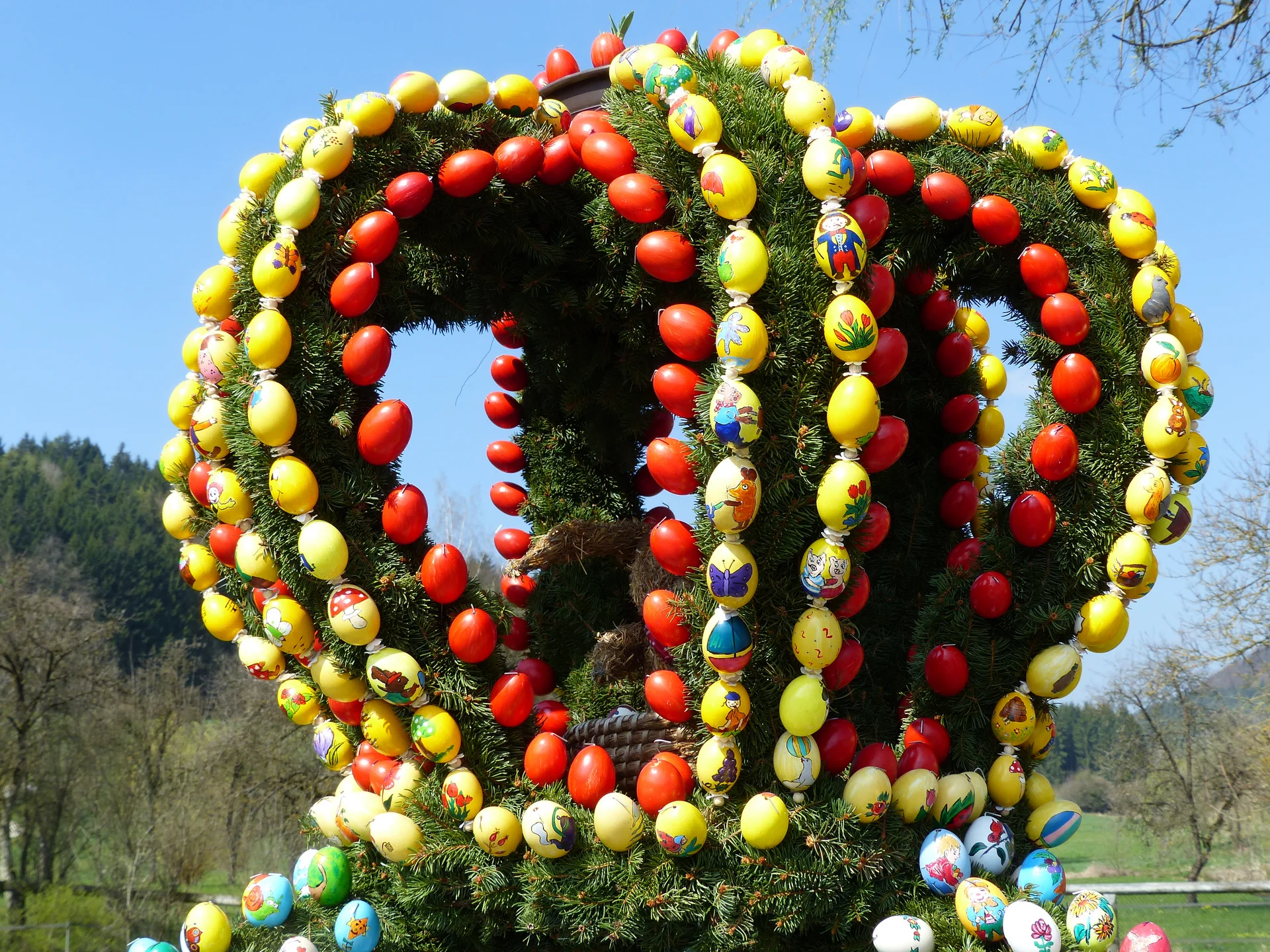 Heute erleben Sie die lebendige Ostertradition Frankens: Fast jeder Ort der fränkischen Schweiz schmückt zu Ostern seinen Brunnen mit kunstvollen Girlanden und bunten Ostereiern – ein einzigartiges Farbenspiel! Die Rundfahrt führt Sie über Hummeltal, Gößweinstein mit seiner barocken Basilika, zum weltgrößten Osterbrunnen in Bieberbach und weiter durch das romantische Heiligenstadt vorbei an Schloss Greifenstein. Ein Tag voller fränkischem Brauchtum, landschaftlicher Schönheit und eindrucksvoller Geschichte.
